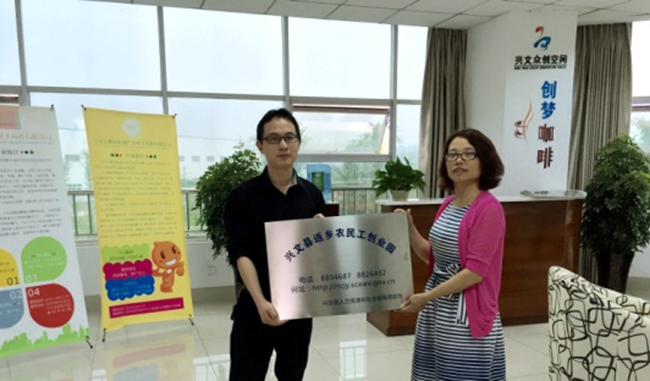 為推動(dòng)興文縣創(chuàng)新創(chuàng)業(yè)和科技創(chuàng)新良好氛圍的全面實(shí)施,2016年5月31日下午,興文縣人才中心和就業(yè)促進(jìn)局王局長(zhǎng)、陳局長(zhǎng)到眾創(chuàng)空間進(jìn)行調(diào)研指導(dǎo),并授牌興文眾創(chuàng)空間為“興文縣大學(xué)生創(chuàng)業(yè)孵化基地”和“興文縣返鄉(xiāng)農(nóng)民工創(chuàng)業(yè)園”。